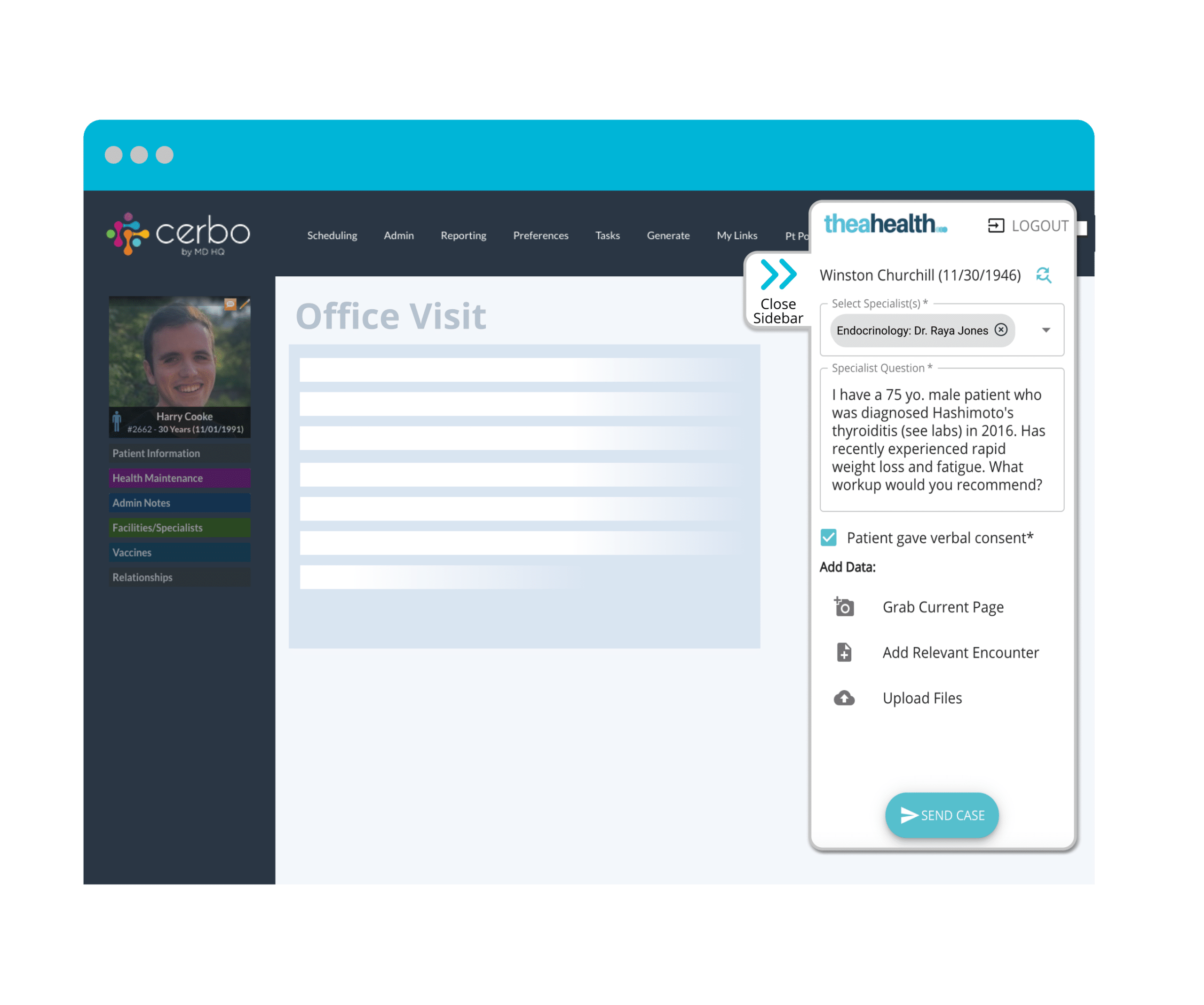 Thea Health has partnered with Cerbo to allow you to ask specialists questions about your patients from within your EMR.